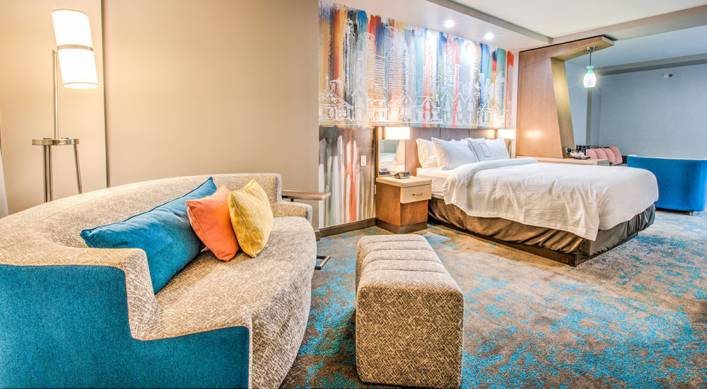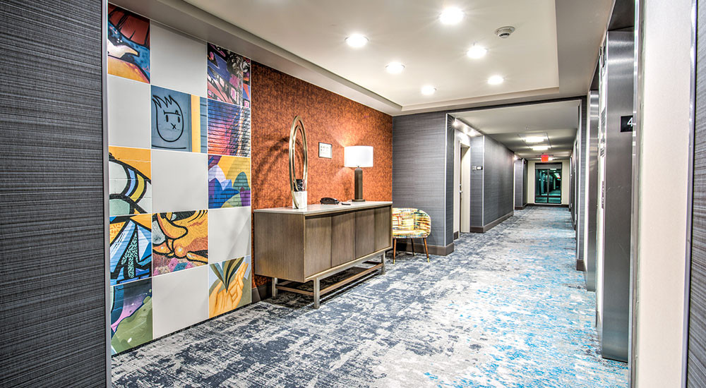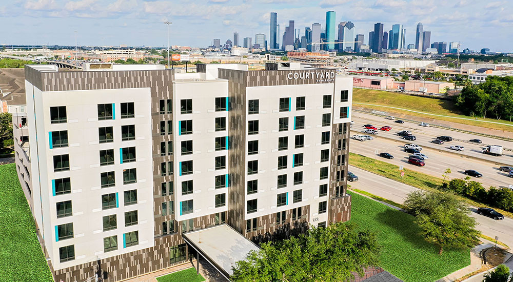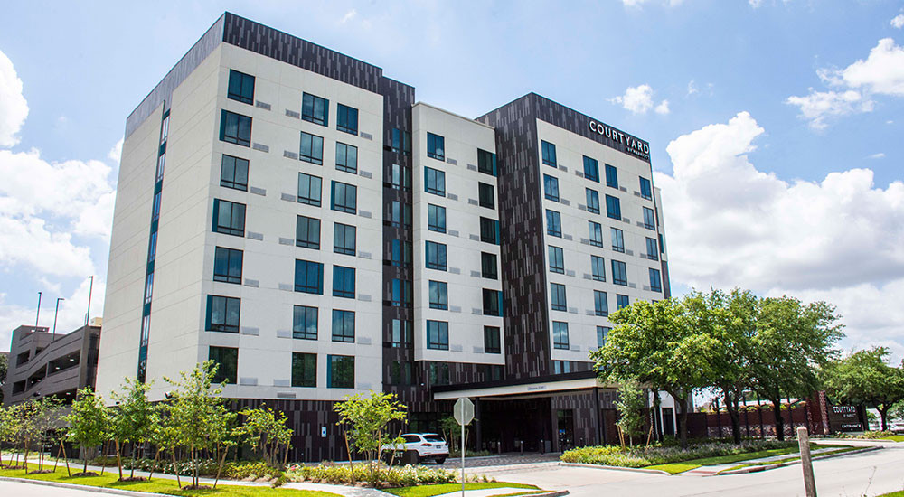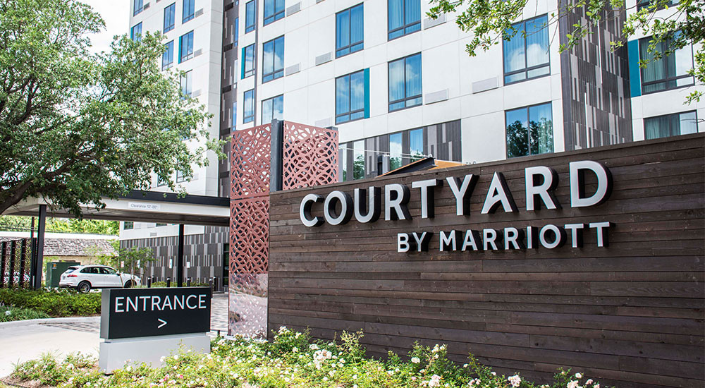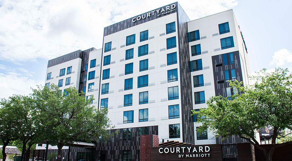8-story hotel with 147 rooms is located in Houston Heights and just 2 miles from downtown and close to the George R. Brown Convention Center, Minute Maid Park, the Toyota Center, and White Oak Music Hall features relaxation rooms, an outdoor patio, a swimming pool, and, fresh and contemporary lobby design. photo credit goes to https://curvehospitality.com/